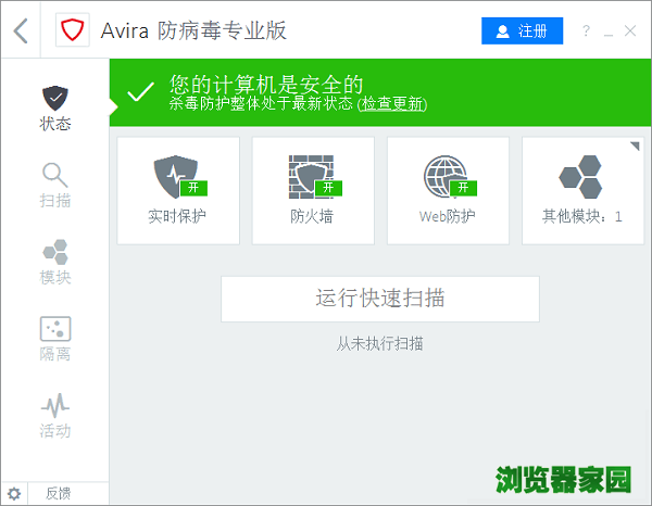 全球浏览器网网站提供小红伞杀毒软件下载免费版v15官网下载安装地址。小红伞AntiVir是一款德国著名杀毒软件,自带防火墙,它能有效的保护个人电脑以及工作站的使用,以免受到病毒侵害。可以检测并移除超过60万种病毒,支持网络更新。界面简明,启动迅速。尤其是老机器,装他最合适不过了。Avira整合了社交网络,增强了儿童保护,整合了Android Security、Experts Market,通过Arira Protection Cloud(APC)云防护和ProActiv提供了更强大的防护,采用了新的SearchFree工具栏、Web安全顾问(Safety Advisor)、Browser Tracking Blocker,用户界面也进行了修。