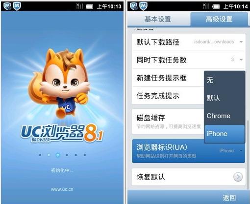 UCweb手机浏览器版本特性: