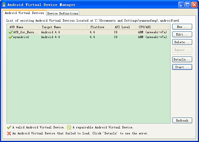 四、模拟器*做安卓开发的肯定都知道安卓模拟器,这是谷歌官方的提供的开发环境,能模拟安卓环境,还可切换各个版本,可下载配置好的环境,然后打开eclipes,直接打开AVDM,穿件一个AVD,然后start,如下图: