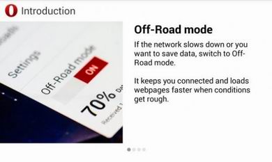 打开Opera的越野模式(Off-Road)的方法就更简单了,打开O菜单,就可以看到Off-Road的选项,你可以直接选择打开或者关闭。这样的设计可以让你方便选择不同的上网模式,例如说当你用WiFi上网时可以把Off-Road关闭,而用手机运营商网络时可以打开Off-Road。此外在Opera中你还可以设定在Off-Road模式中图片的压缩比例,选择更高的压缩比例可以给你节省更多的流量,不过图片的质量自然就会随之而下降啦。