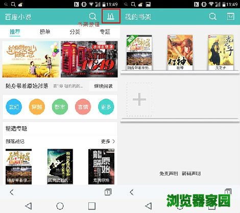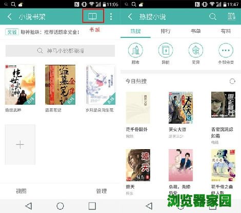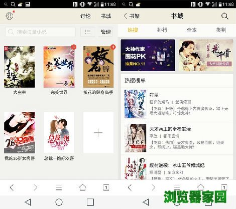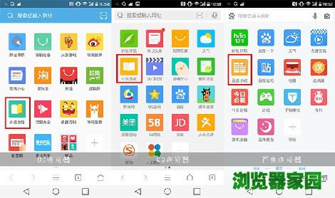 ▲三款浏览器的小说入口都放在比较明显的位置