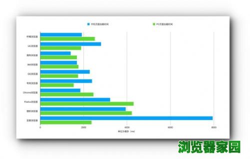 本次测试的访问页面分别为手机版与电脑版首页。测试中,每款浏览器会在清空后台的情况下打开上述页面,重复三次并记录结果,最终取平均值进行统计,最终这项测试的结果如下图所示:
