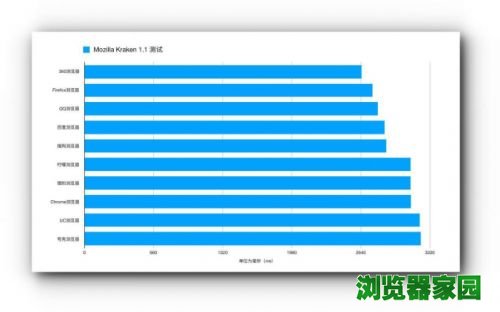 这项测试中,我们通过了一款名为「 Mozilla Kraken 」的软件来测试浏览器的JavaScript性能,该工具基于 sunspider 进行了改进,使得测试结果更接近于实际使用效果。