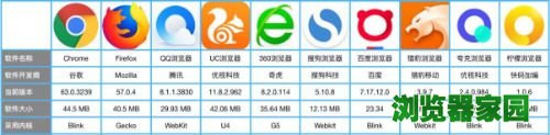为此我们选取了十款最热门的10款浏览器,涉及的产品包括了QQ浏览器、360浏览器、UC浏览器、Chrome、Firefox等等,软件的具体版本信息如下表所列:
