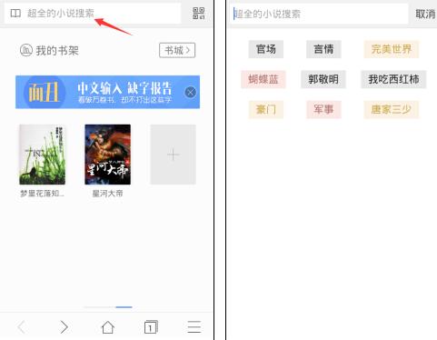 图:搜狗手机浏览器的“超全的小说搜索”功能