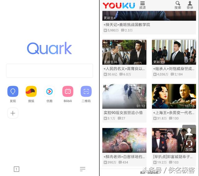 第一款叫夸克浏览器,夸克浏览器是一款以轻、快为核心,设计风格简约,启动速度极快。