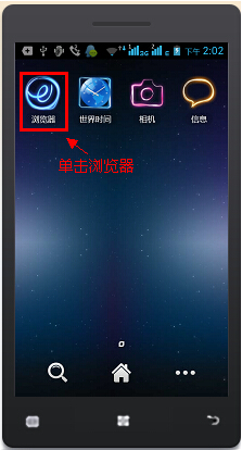 1、打开手机主菜单,单击“浏览器”应用程序。