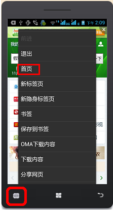 5、此时,无论手机停留在网页的什么地址上,都可以通过点击手机菜单,然后再点击“首页”项,回到设置好的主页面上。
