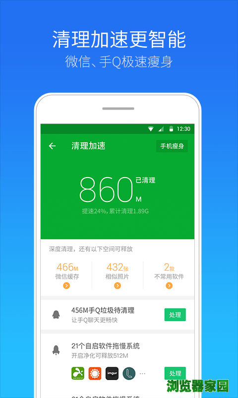 2、清理加速:清理内存手机加速,空间性能双管齐下;