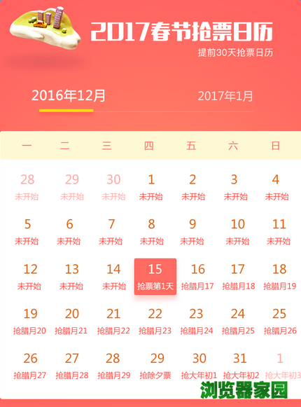 2017春节抢票日历表下载免费下载