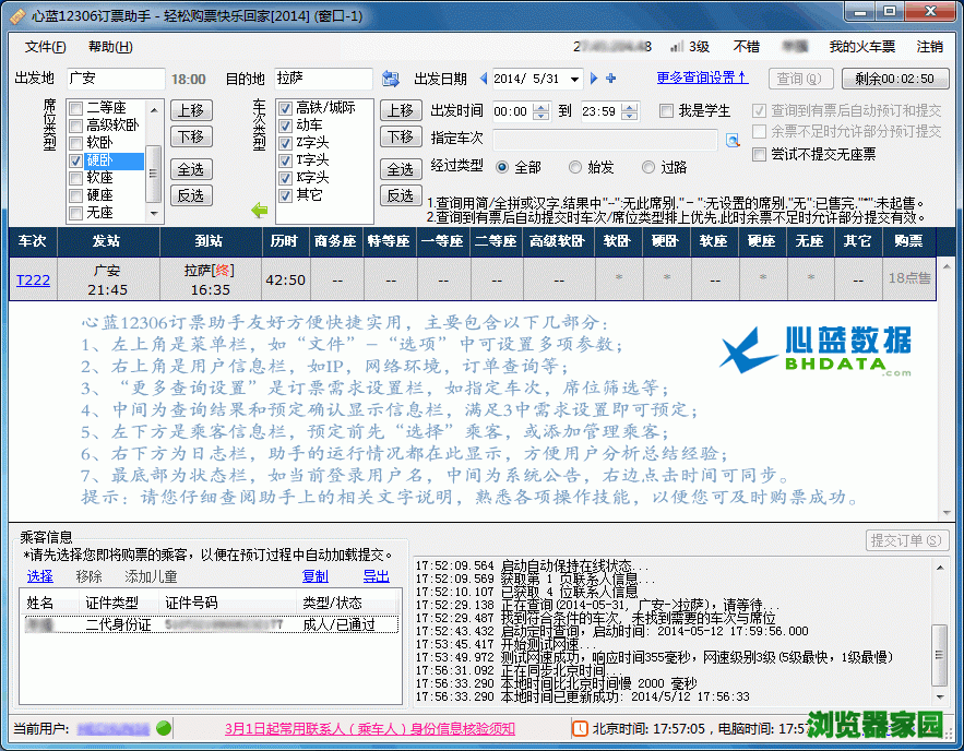 心蓝12306订票助手怎么样?心蓝12306订票助手好用吗?全球浏览器网小编为正在发愁为春节抢票的小伙伴们带来了心蓝12306订票助手2017最新版,该软件是一款功能强大的抢票神器,有了该软件再也无需担心没有车票啦,轻松抢票,高兴回家,需要的用户赶紧下载使用吧。