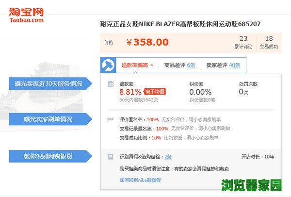 通过搜狗打假助手插件提供的卖家信息,可以让买家快速地分辨出当前卖家的信誉情况,比单单看淘宝提供的信誉要更加丰富,通过卖家信誉来决定要不要购买这件商品