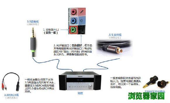 电脑的音频输出口一般都是3.5的音频插头,如下(看不清文字的,请点击图片查看大图):