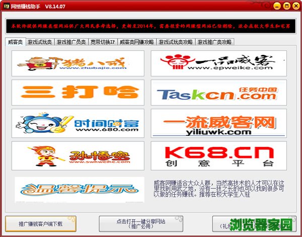 网络赚钱综合助手是一个网赚平台的导航,拥有此软件可以随意的打开网页而不用再愁搜索网赚的网站本软件每周更新一次,预计下周更新添加各大网赚网站的赚钱方法攻略。 本软件对于高技术人才和没有一技之长甚至只爱玩游戏的网友们提供更多的赚钱机会相信通过这个软件大家可以找到赚钱的快感。
