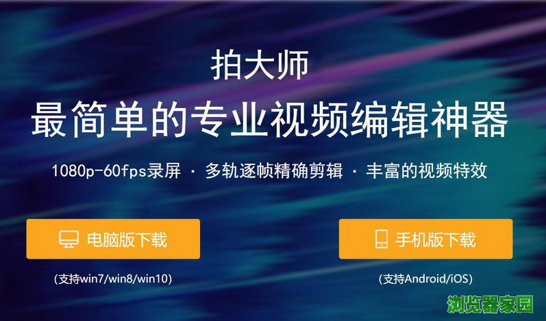 全球浏览器网网站提供拍大师官方下载电脑版2019最新版下载安装。拍大师2019官方版是一款简单实用的视频剪辑软件,拍大师视频剪辑软件集多种特色功能于一体,能够帮助用户对视频进行剪辑、配音、加字幕等操作,让视频更有创意的同时变得更加生动华丽。拍大师作为专业的视频剪辑软件让你的视频作品与众不同。欢迎有需要的用户官网下载体验。