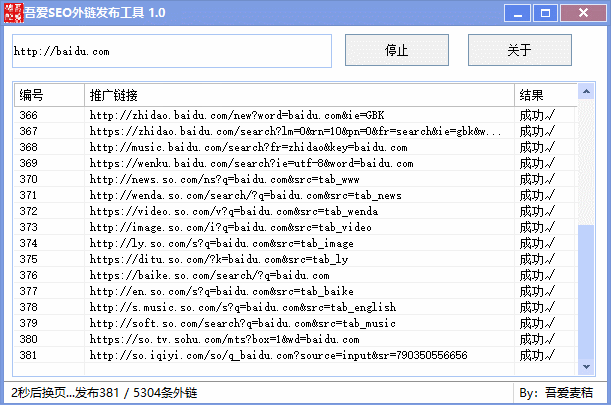 吾爱SEO外链发布工具能够帮助你发布5000条外链,完全都是免费的,可以直接的随便进行刷取外链,很多站长可能会需要这款外链发布会工具!