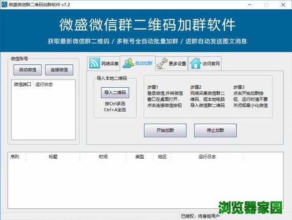 微盛微信群二维码加群软件是一款通过微信群二维码自动扫码加群的微信工具。微盛微信群二维码加群软件支持多个微信号同时登陆,实现多微信号自动循环加群,无需人工值守全自动模拟人工运行,解放双手,提高加群工作效率。有需要的用户可以官网下载体验,本站不提供下载地址。