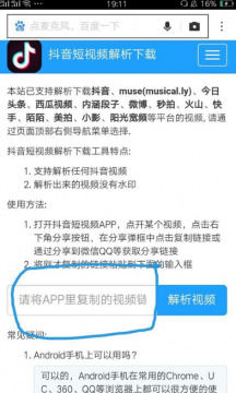 3、打开浏览器,在浏览器中打开在线抖音短视频视频解析,再输入栏中粘贴刚刚复制的链接地址,再点击解析视频