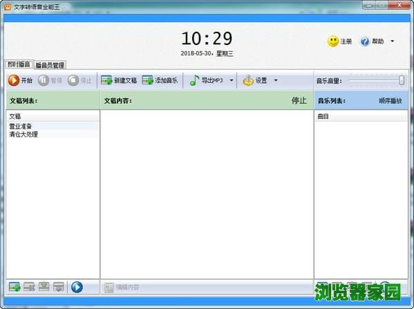 9、可将播音稿导出为带有背景音乐的语音广告MP3,可任意放到U盘或手机播放,自由度高。