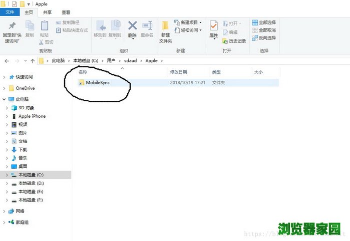 5.此时再打开Itunes默认备份路径:"C:\Users\用户\Apple即可发现新建立的文件夹MobileSync且文件夹图标上有快捷方式标志,证明文件夹连接成功。