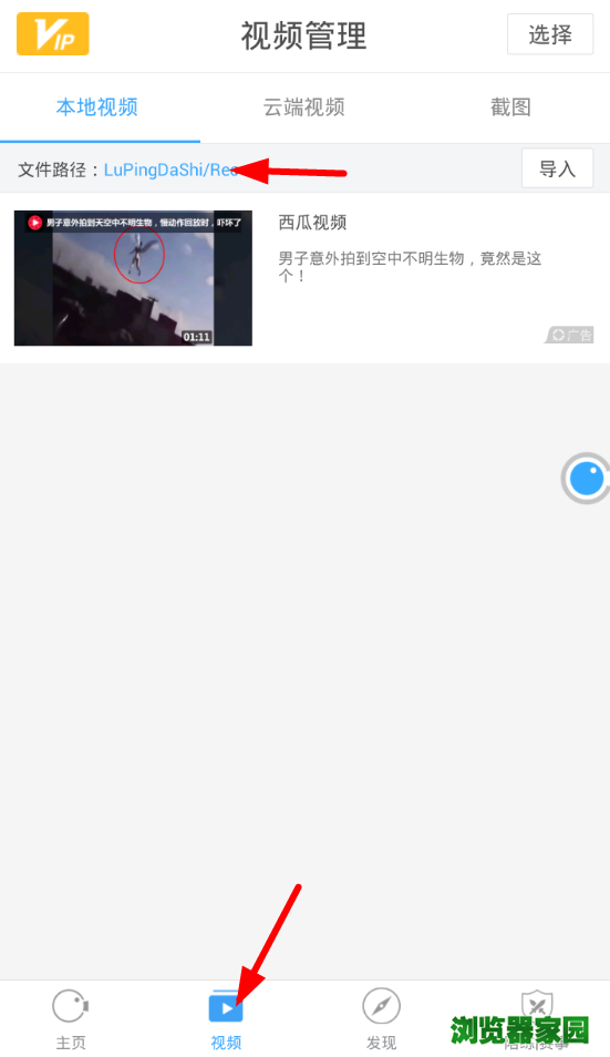 1、选择下方的“视频”功能,可以在上方找到文件保存的路径。