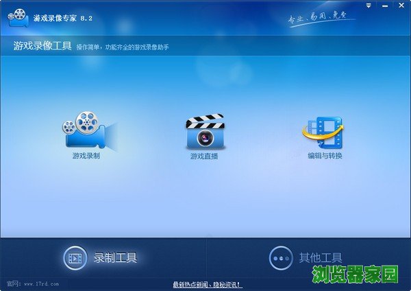 全球浏览器网网站提供游戏录像专家软件下载官方版Ver 9.1免费安装地址。游戏录像专家一款功能强大、且操作简单的游戏录像软件,完全免费,无任何功能限制,用户可放心使用。该软件拥有游戏录制、游戏直播、编辑与转换3大功能,界面简洁,使用方便,支持摄像头和游戏的一起录制,同时也支持边玩游戏边直播游戏画面,让您与朋友一同分享乐趣,是目前网络上又一款给力的游戏录制视频软件。有需要的用户可以进入下载体验。