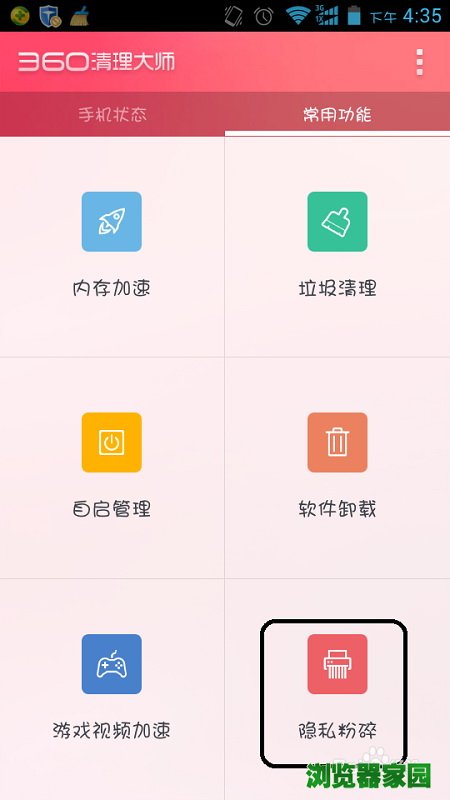 打开360清理大师,找到隐私粉碎功能。点击进入使用。