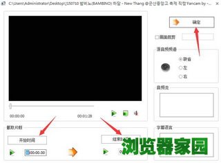 2.然后拖动时间轴设置该视频片段的开始时间和结束时间,然后点击“确定”。