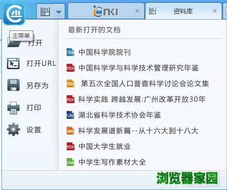 启动程序后,可点软件左上角图标打开菜单栏,点击“打开”按钮,开始浏览或者说是阅读该文档,这个文档必须是以下后缀名的文件类型CAJ、PDF、KDH、NH、CAA、TEB;并且可以再次对文档进行另存、打印等操作。