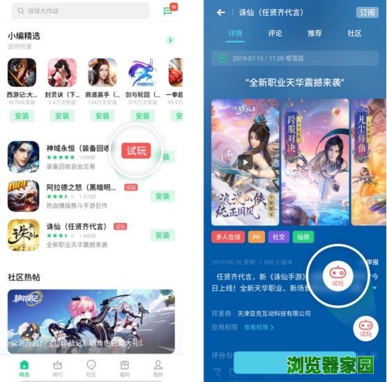 人性化功能「试玩」,畅享游戏免下载快速体验