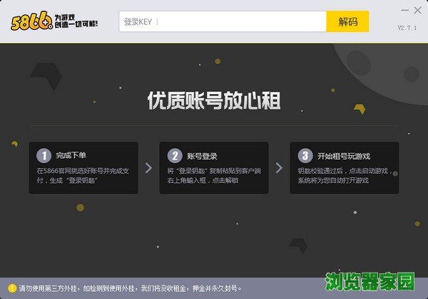 6、账号达人登号器拥有自动检测外挂功能,一旦检测到外挂,租号者订单立即结束并扣除其全部租金,情节严重者直接封号。