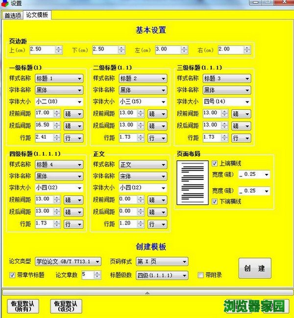 3.“设置”窗体的“模板格式”标签页中增加“导入”和“导出”按钮,用于导入和导出论文模板格式信息