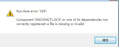 这个是因为您的系统缺少了MSCOMCTL.OCX控件,解决方法就是下载控件 ,下载好后解压出来,放到C:\Windows\System32 目录下,就可以了。