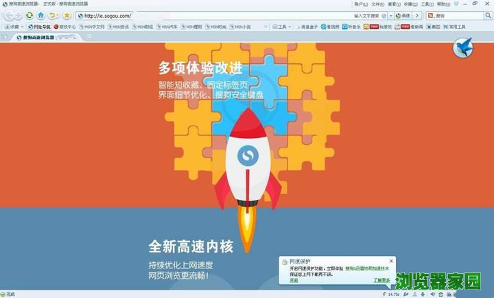 搜狗高速浏览器启动架构再次优化,可迅速启动浏览器并同时打开主页,相比之前更高速。