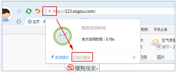 点击地址栏左侧的加速器图标,然后根据情况选择“切换到兼容”或者“切换到高速”即可,如图: