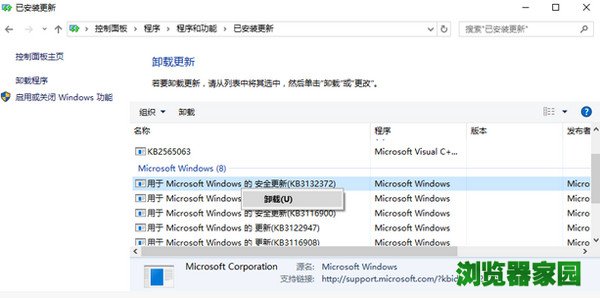 4. 在列表中,找到名为【KB3132372】的更新,右键选择【卸载】