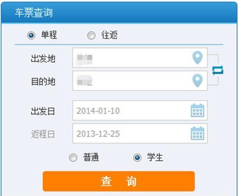 2.访问新版的12306,并在查询栏输入出发地和目的地之后选择查询。