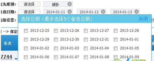 7.在备选日期栏选择我们车次的日期,可以选择多个哦。
