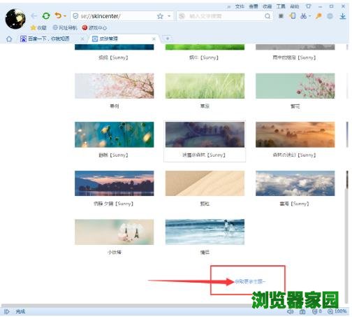 2、接着我们滑动到皮肤设置界面的底部,然后点击“获取更多主题”来到搜狗浏览器的皮肤中心;