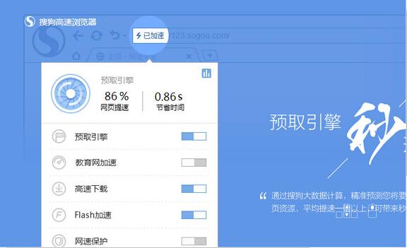 搜狗高速浏览器5.3首创双核引擎,5级加速体系,兼容双核的应用平台,个性化的皮肤体系以及先进的安全组件,搜狗为用户打造了快速,便捷,个性,安全的上网体验,是千万用户高速上网的必备工具。享受网络,就用搜狗高速浏览器。自发布以来,搜狗高速浏览器市场份额不断攀升,2014年增长72%,成为增长最快的本土浏览器,市场份额排名第三。在中国拥有1.1亿用户。