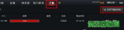 4、在客户端上边点击下载按钮,就可以看到你所有正在下载的情况。下载完了,点击打开下载文件夹就可以看到所有已经下载的视频。