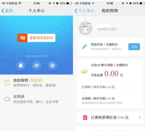 第一重 用UC浏览器登录淘宝账号 天猫积分送不停