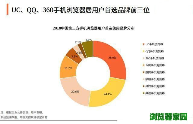 至于各大浏览器的市场份额,报告显示,在用户首选品牌使用占比中,28.0%手机浏览器用户首选UC手机浏览器,随后分别是QQ手机浏览器、360手机浏览器,分别占比24.1%、20.6%。三者共占据了72.7%的市场份额。