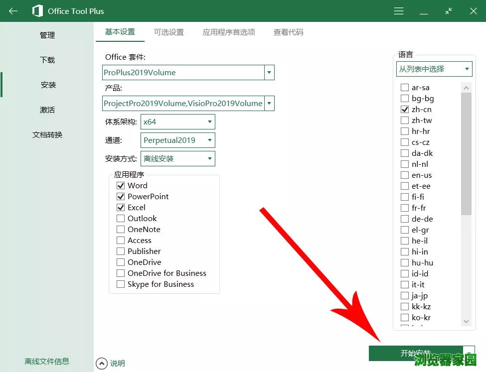 ①选择office套件:ProPlus2019Volume;