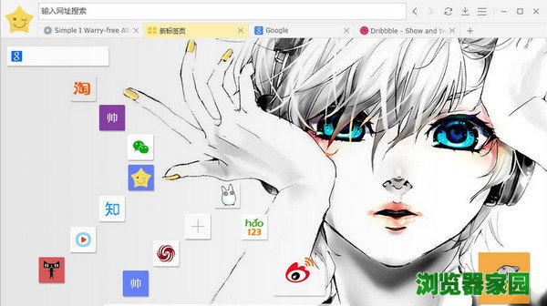 1, 快速访问页,可以自定义浏览器背景和启动页的收藏夹图标,将收藏夹中的网址添加到启动页,可以自定义图标文字和颜色,支持透明设置,并且可以像桌面一样随意拖动,不遮挡背景图片。