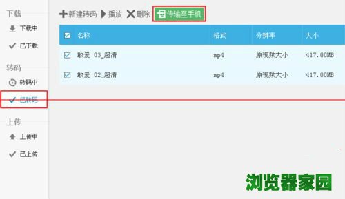 5、好啦!待下载完毕和自动转码完成之后,我们再打开下载管理页面,进入“已转码”选项,将视频传输到手机即可。