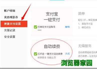 2、默认进入“便捷支付设置”,在自动续费那一栏,点击“关闭”,弹窗选择“确定”。