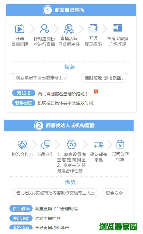 淘宝直播如何开通?淘宝直播是阿里推出的直播平台,定位于"消费类直播",用户可"边看边买"涵盖的范畴包括母婴、美妆、潮搭、美食、运动健身等。淘宝直播"消费类直播"手淘平台,目前是女性观众占了绝对的主导,女性比例约为80%,而每晚8点至10点不仅仅是收看直播最踊跃的时段,同时也是用户们最愿意下单的时间,这似乎证明,女性追起直播也同样疯狂。淘宝平台在乎的是粉丝的粘性,商家在乎的是新流量的分配,所以淘宝直播出来了。最近网上看了一下,很多人都想开通淘宝商家店铺直播,不懂在哪里开,不了解开通直播具体有哪些要求. 全球浏览器网小编为大家整理的下文将为大家一一介绍。